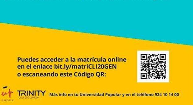 Este año la realización de la matrícula se puede realizar de forma online, con el código QR del cartel adjunto a esta noticia, o en el siguiente enlace: http://bit.ly/matriCLI20GEN. Si existiera cualquier problema, también se puede asistir a la Universidad Popular donde se facilitará el documento en papel para rellenar.