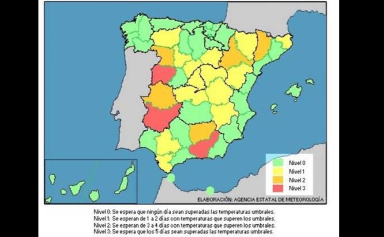 Desde el Ayuntamiento de Arroyo de la Luz se ha comunicado que la Agencia de Protección Civil y Emergencias de la Consejería de Medio Ambiente ... ha activado el Plan de Vigilancia y Prevención de los Efectos del Exceso de Temperatura sobre la Salud en nivel roo en la provincia de Badajoz y en nivel naranja en la provincia de Cáceres, al prever que se superaran las temperaturas umbrales máximas y mínimas establecidas durante los próximos cinco días.