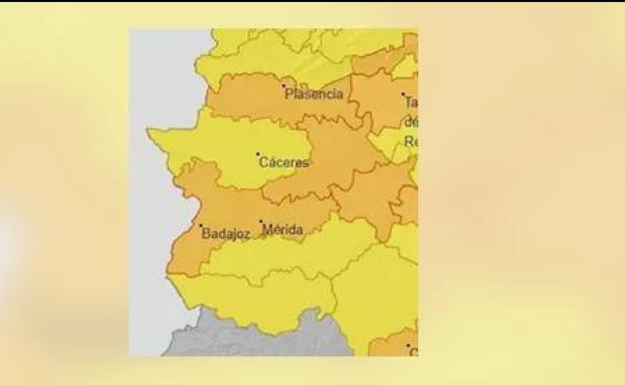 También se mantendrá el nivel naranja de alerta en las zonas cacereñas de las Villuercas y Montánchez, desde las 14,00 hasta las 20,00 horas, donde las temperaturas subirán hasta los 39 grados.