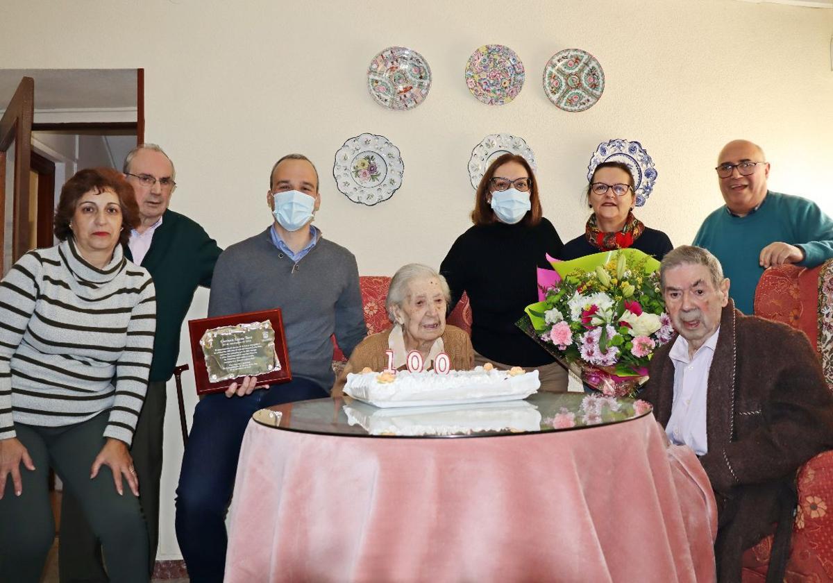 Durante su cumpleaños recibió la visita del alcalde de Arroyo de la Luz, Carlos Caro, y de la concejala Mercedes Pérez, quienes le hicieron entrega de una placa conmemorativa por su cumpleaños número 100, además de regalarle un bonito ramo de flores.