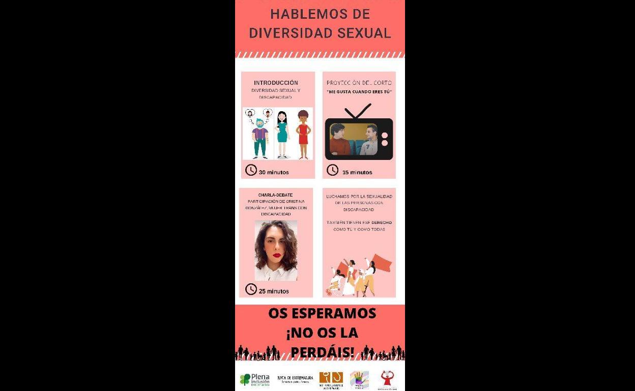 La programación dará comienzo a las 17.30 horas con una introducción sobre diversidad sexual y discapacidad, de 30 minutos de duración.