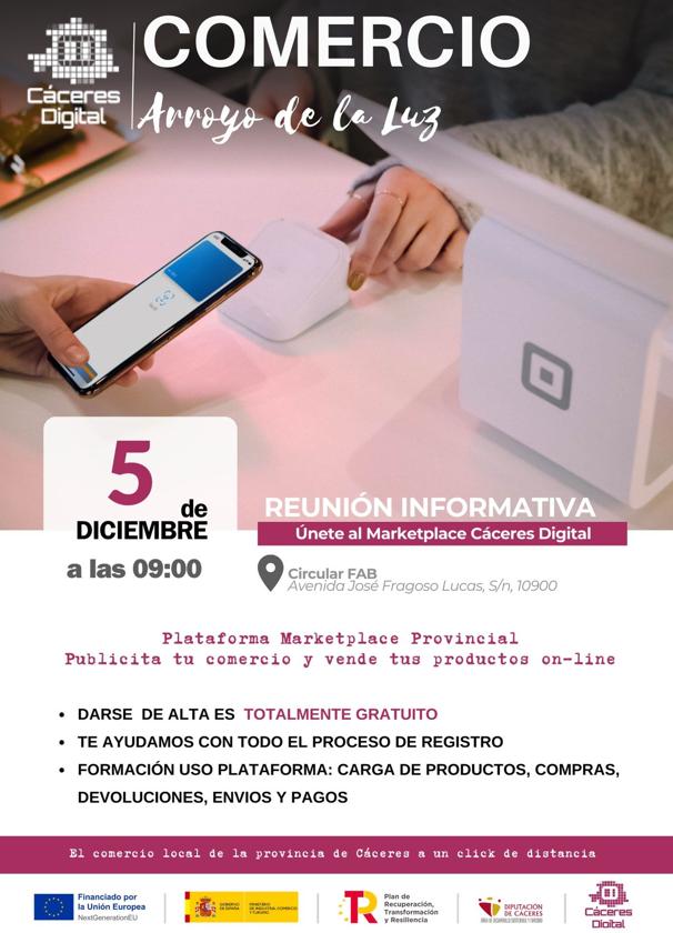 La localidad de Arroyo de la Luz acogerá el próximo jueves, día 5 de diciembre, en el Circular FAB de la localidad, desde las 9.00 horas, una jornada formativa sobre digitalización del comercio minorista y adhesión al marketplace 'Cáceres Digital'.