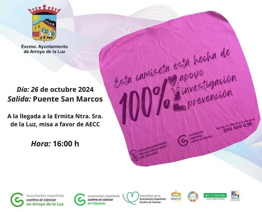 En el año 2021, Arroyo de la Luz fue la primera localidad que recibió una placa como municipio adherido al Circuito Provincial de Marchas Rosas, otorgada por la Asociación Española Contra el Cáncer a través de su Junta Provincial en Cáceres al Ayuntamiento de Arroyo de la Luz, en reconocimiento como entidad local adherida al Circuito Provincial de Marchas Rosas y por la colaboración prestada a la Junta Local de AECC en todas las actividades que organiza dicha asociación.