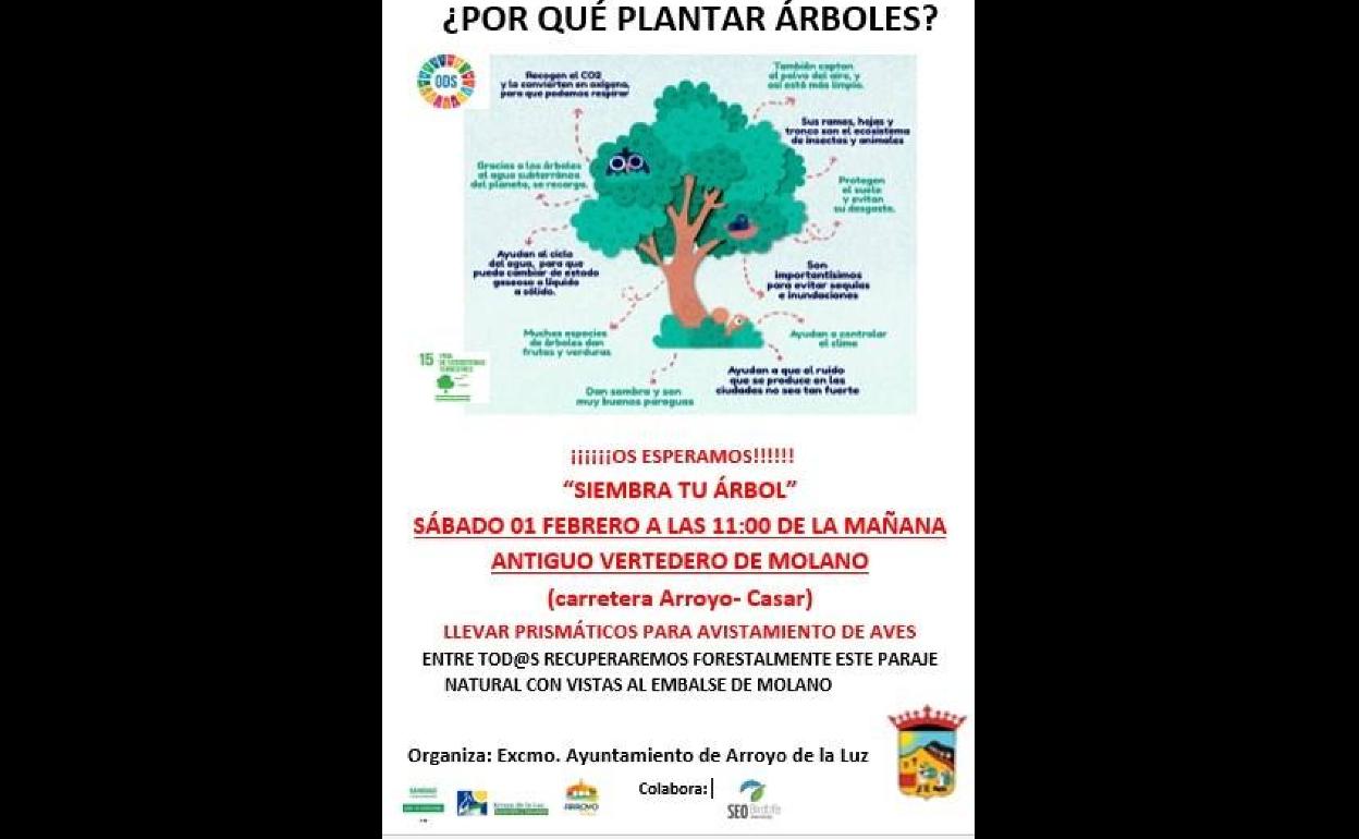 Mañana sábado, 1 de febrero, organizado por el Ayuntamiento de Arroyo de la Luz a través de la Oficina de Ciudades Saludables y Sostenibles, se ... llevará a cabo una actividad de plantación de árboles y avistamiento de aves.