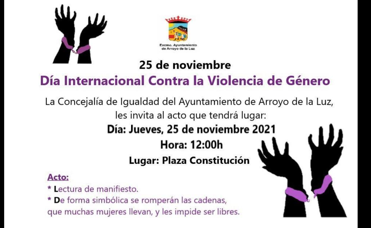 La concejalía de Igualdad del Ayuntamiento de Arroyo de la Luz, a través de la Biblioteca Municipal y la Oficina de Ciudades Saludables y Sostenibles, ... ha organizado un acto para el próximo jueves, día 25 de noviembre, para no olvidar que el 'Día Internacional Contra la Violencia de Género' es una reivindicación y ninguna celebración.