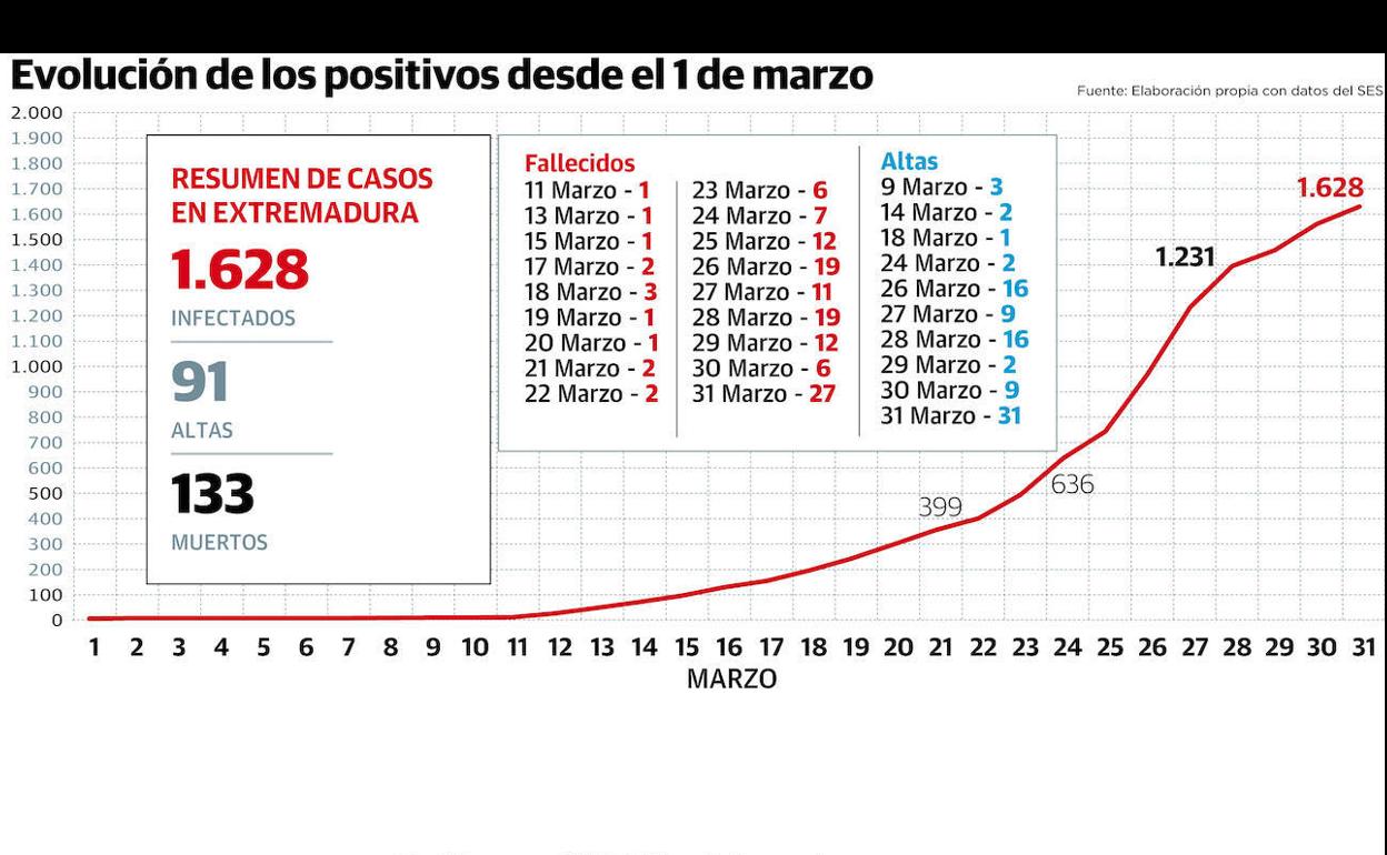 Este miércoles se cumple un mes desde que se detectaron los primeros casos de coronavirus en Extremadura, cuatro varones de las áreas sanitarias de Llerena-Zafra, Cáceres y Coria. En la actualidad ya hay 1.628 contagiados en la región.