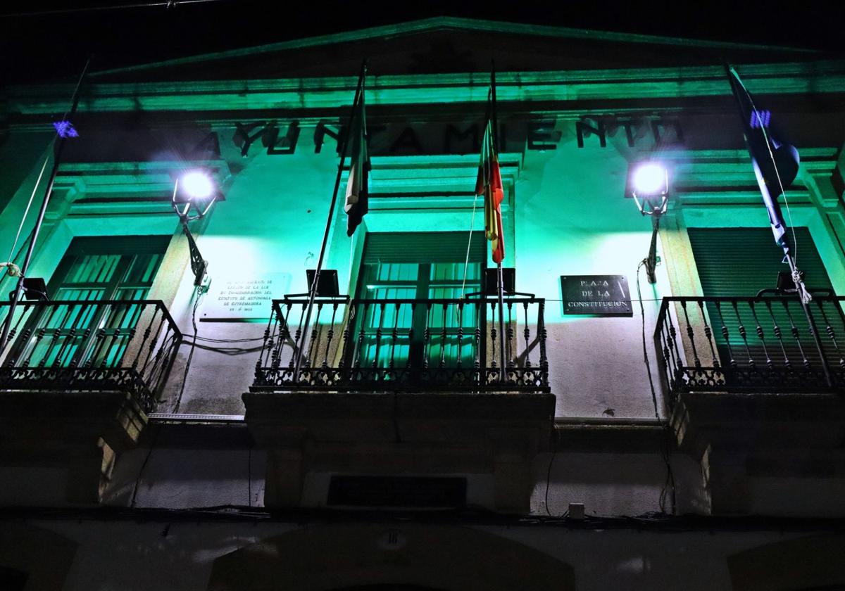 Con motivo de la celebración de la patrona de la Guardia Civil, Nuestra Señora La Virgen del Pilar, la fachada del Ayuntamiento de Arroyo de la Luz luce iluminada de color verde para conmemorar a la benemérita.
