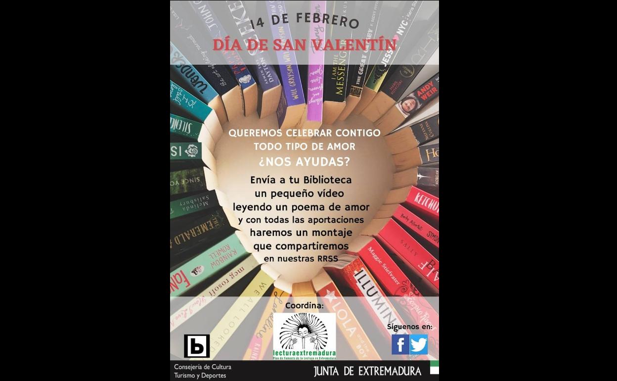 Así, van a comenzar celebrando San Valentín, para lo que piden que todo aquel que lo desee envíe un vídeo, hasta el jueves 11 de febrero, recitando un poema de amor o un fragmento de un libro con el mismo tema, al correo biblio_arroyo@outlook.es, que después serán publicados en la página de Facebook de la biblioteca arroyana.