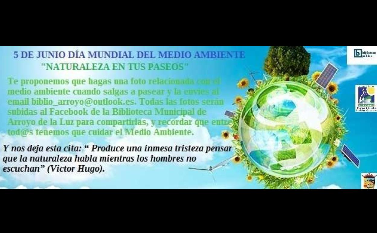 La Biblioteca Pública Municipal de Arroyo de la Luz, en colaboración con el ayuntamiento local, está realizando durante la presente semana una serie de actividades ... que está compartiendo en su página de Facebook para celebrar el Día Mundial del Medio Ambiente.