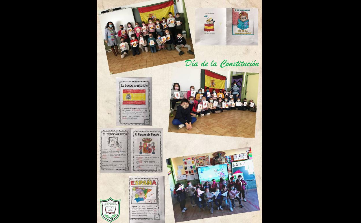 Entre las diferentes actividades que han realizado con los distintos cursos de los dos centros de los que se compone el colegio, han realizado trabajos en los que se les ha enseñado los símbolos de España; la bandera y el escudo, banderines de España y pequeños libros con dibujos y mensajes en los que se recogían, de forma resumida y muy fácil, los derechos y deberes que se incluyen en la Constitución.