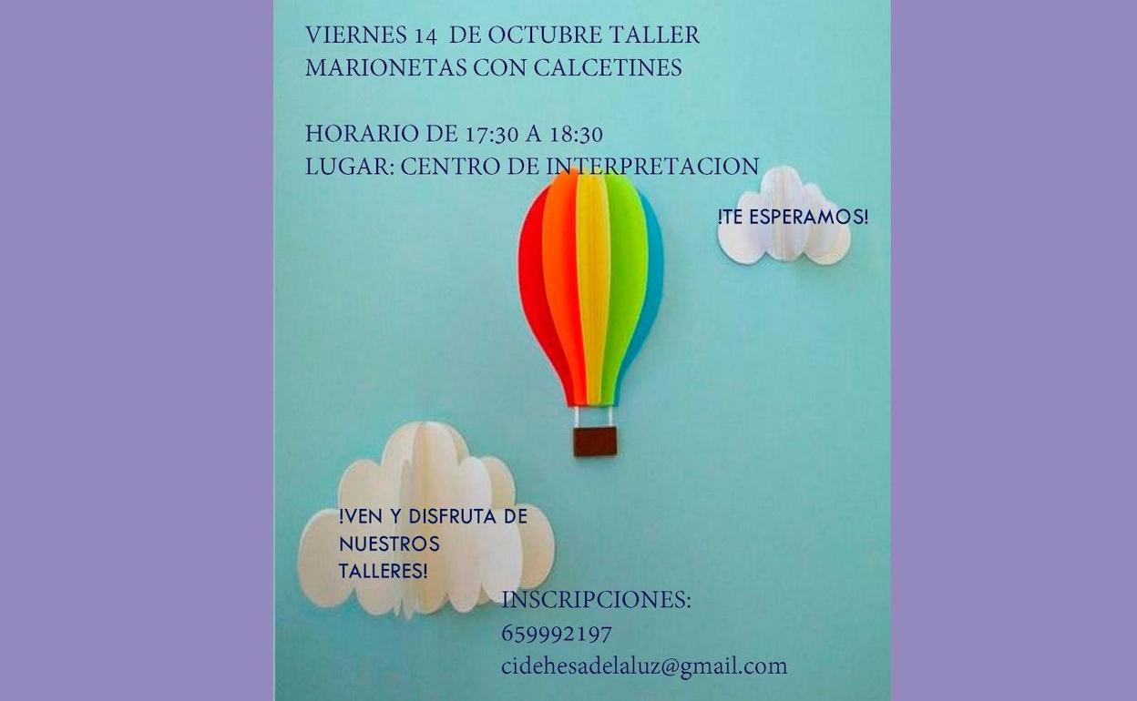 En ... esta ocasión será un taller de Marionetas con Calcetines, dirigido a niños de entre 6 y12 años de edad. El taller se celebrará en las instalaciones del centro, en horario de 17.30 a 18.30 horas.