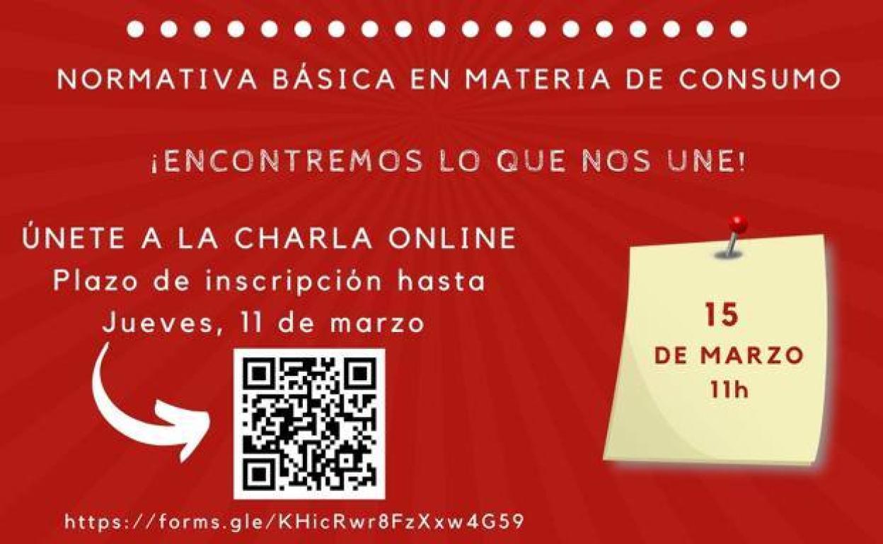 La cita, que será online, dará comienzo a las 11.00 horas, accediendo a la misma a través del código QR que aparece en el cartel que acompaña a esta noticia. Para participar es necesario inscribirse, siendo el plazo para ello hasta el próximo jueves, día 11 de marzo. El enlace para llevar a cabo la inscripción es el https://forms.gle/KHicRwr8FzXxw4G59