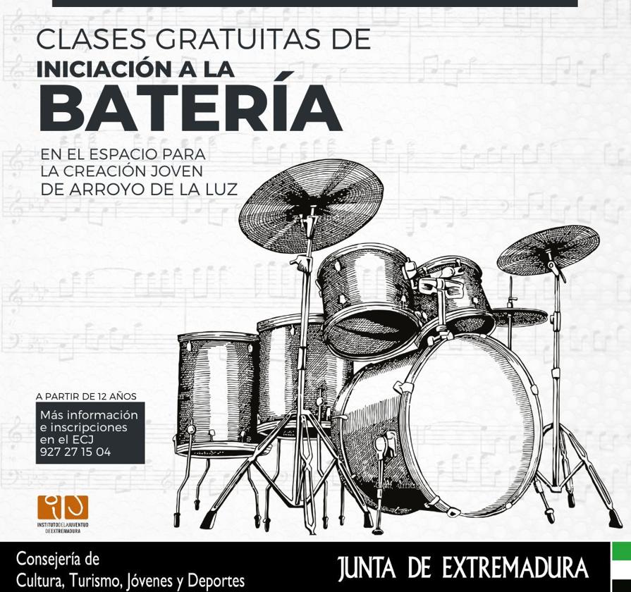 El Espacio para la Creación Joven de Arroyo de la Luz, continuando con su filosofía de acercar las diferentes disciplinas de la cultura a los jóvenes, ha organizado unas clases gratuitas de iniciación a la batería para todos aquellos que deseen aprender a tocar este instrumento.