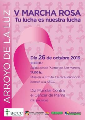 Con dicho motivo, la Junta Local de Arroyo de la Luz de la Asociación Española Contra el Cáncer ha organizado la V Marcha Rosa de la localidad, que se celebrará el próximo día 26 de octubre, con la colaboración del Ayuntamiento de Arroyo de la Luz.