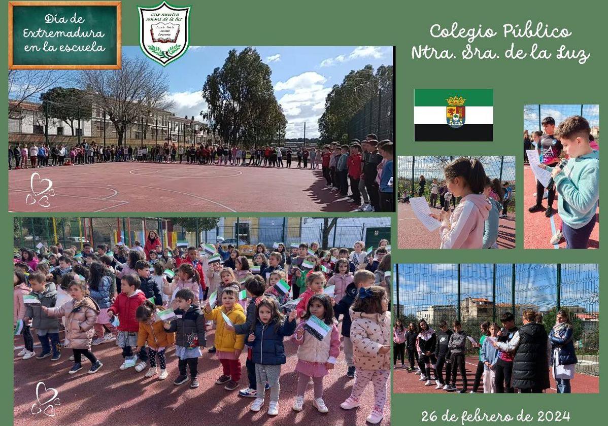 Durante la mañana del pasado lunes, día 26 de febrero, el colegio Nuestra Señora de la Luz, de Arroyo de la Luz, celebró el Día ... de Extremadura en la Escuela. El 25 de febrero del año 1983, fue aprobado por las Cortes Generales el Estatuto de Autonomía de Extremadura, por lo que cada 25 de febrero, los centros escolares conmemoran esta fecha.