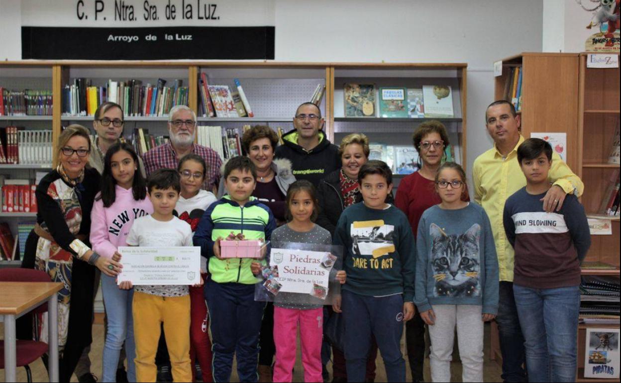 Durante la mañana de ayer jueves, 25 de octubre, el colegio público Nuestra Señora de la Luz, de la localidad cacereña de Arroyo de la ... Luz, recibió, en la biblioteca escolar del centro, a miembros de la directiva local de la Asociación Española contra el Cáncer para hacerles entrega de la recaudación obtenida del proyecto Piedras Solidarias, realizado por toda la comunidad educativa.