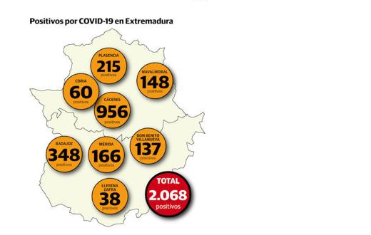 Coria llega a 60 positivos, once de los cuales están ingresados. Hay 39 pacientes en aislamiento domiciliario. Mantiene tres altas y siete fallecidos. Por último, Llerena-Zafra mantiene 38 casos tras sumar dos días seguidos sin nuevos positivos. Registra once hospitalizados, veinte aislados, cuatro pacientes curados y tres fallecidos.