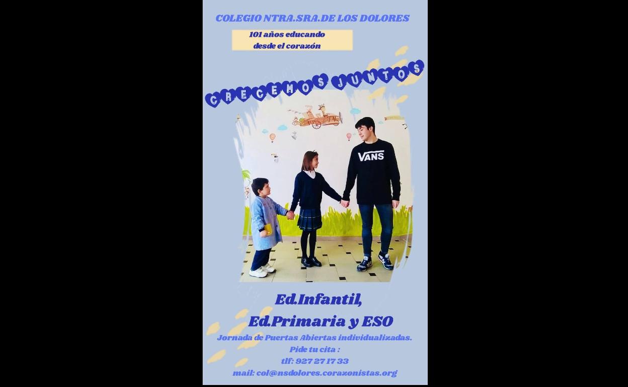 Desde el colegio Ntra. Sra. de los Dolores invitan a todos a que se acerquen a conocer in situ el centro. «Nuestro colegio lleva 101 años formando generaciones arroyanas».