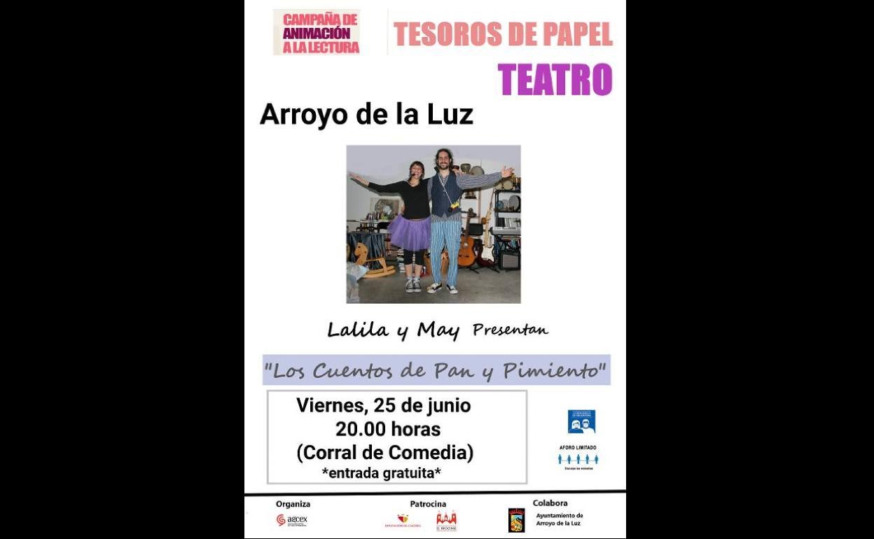 Mañana viernes, día 25 de junio, el Corral de Comedias de Arroyo de la Luz será el escenario de la obra de teatro 'Los cuentos ... de Pan y Pimiento', que llegan por parte de Lalila y May.