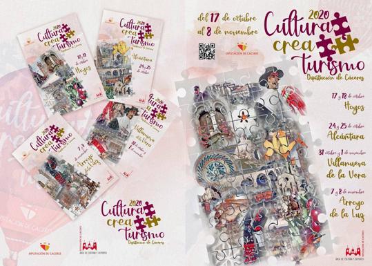 Cultura crea Turismo comenzará el próximo 17 de octubre y se prolongará hasta el 8 de noviembre y los escenarios donde se llevará a cabo ... serán los municipios de Hoyos (17 y 18 de octubre), Alcántara (24 y 25 de octubre), Villanueva de la Vera (31 de octubre y 1 de noviembre) y Arroyo de la Luz, (7 y 8 de noviembre)