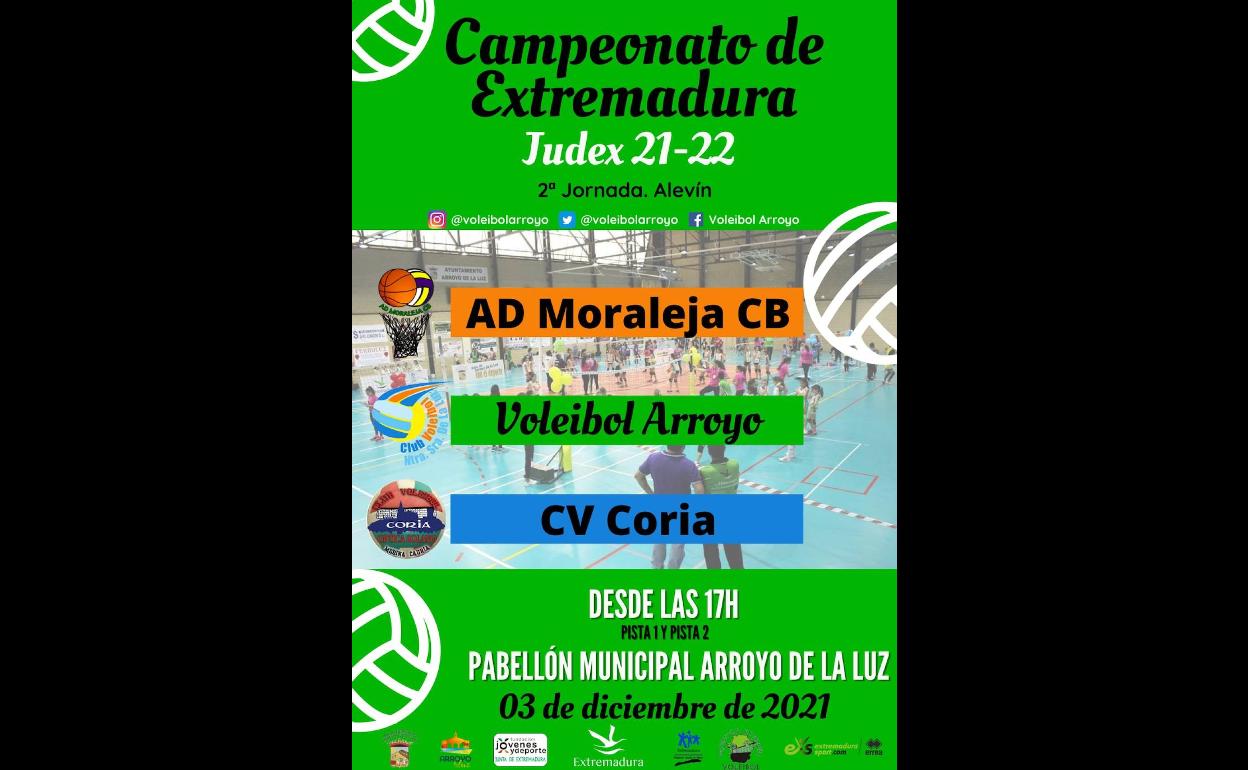 En la pista 1 del pabellón de Arroyo de la Luz, se jugarán los partidos de AD Moraleja CB – CV Coria, a las 17.00 horas, Voleibol Arroyo Blanco – AD Moraleja CB a las 18.00 horas y AD Moraleja CB – Voleibol Arroyo Verde a las 19.00 horas.
