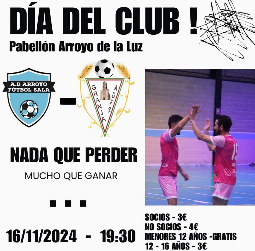Esta jornada, el Arroyo FS se enfrentará al AD Granja Futsal, jugándose el encuentro en el Pabellón Polideportivo Municipal de Arroyo de la Luz, a las 19.30 horas.