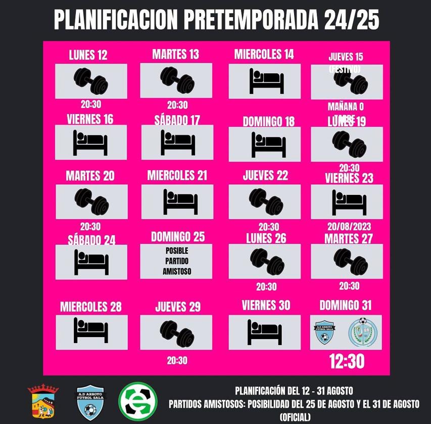 Concretamente tienen marcados en su calendario 9 días de entrenamiento; el día 12, el 13, 15, 19, 20, 22, 26, 27 y 29. Además, en septiembre llevarán a cabo otras 6 sesiones de entrenamiento. En total serán 15 con las que ponerse a punto de cara al inicio de la liga, que será el 14 de septiembre.