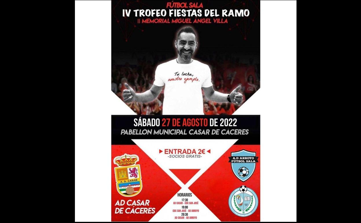 El próximo sábado, día 27 de agosto, el Arroyo FS se desplazará hasta la localidad vecina del Casar de Cáceres para jugar el IV Trofeo ... Fiestas del Ramo de fútbol sala, el II Memorial Miguel Ángel Villa.