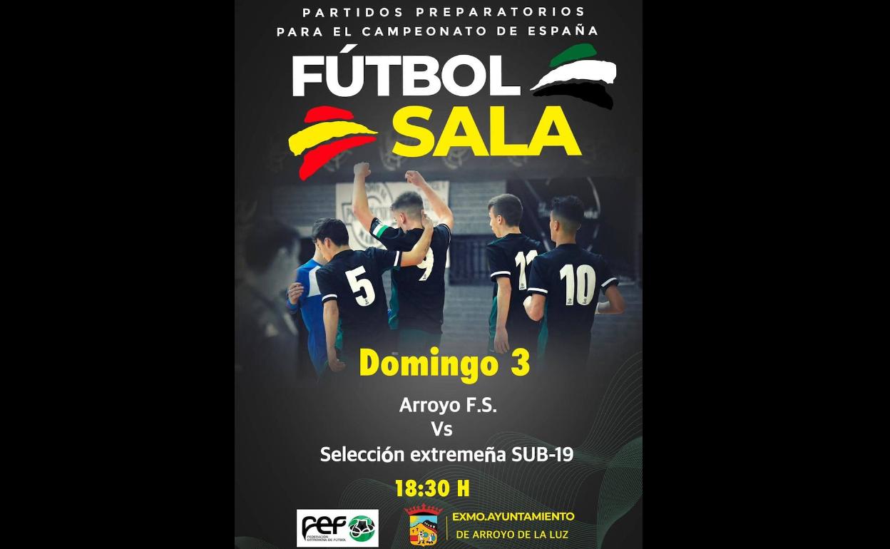 El próximo domingo, día 3 de abril, el Arroyo FS recibirá en casa a los juveniles de la Federación Extremeña de Fútbol para enfrentar un ... partido amistoso que servirá a los visitantes para preparar el Campeonato de España de Fútbol Sala y a los arroyanos para preparar el partido ante el Herreruela, que jugarán la próxima semana.