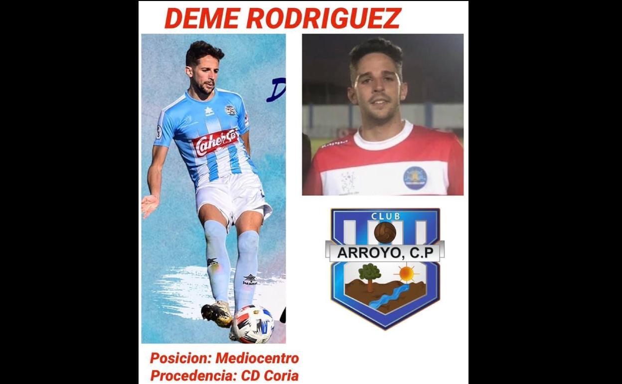 Demetrio Rodríguez González, 'Deme', de la localidad pacense de Almendralejo, es el último fichaje que ha anunciado el Arroyo CP para la próxima temporada.