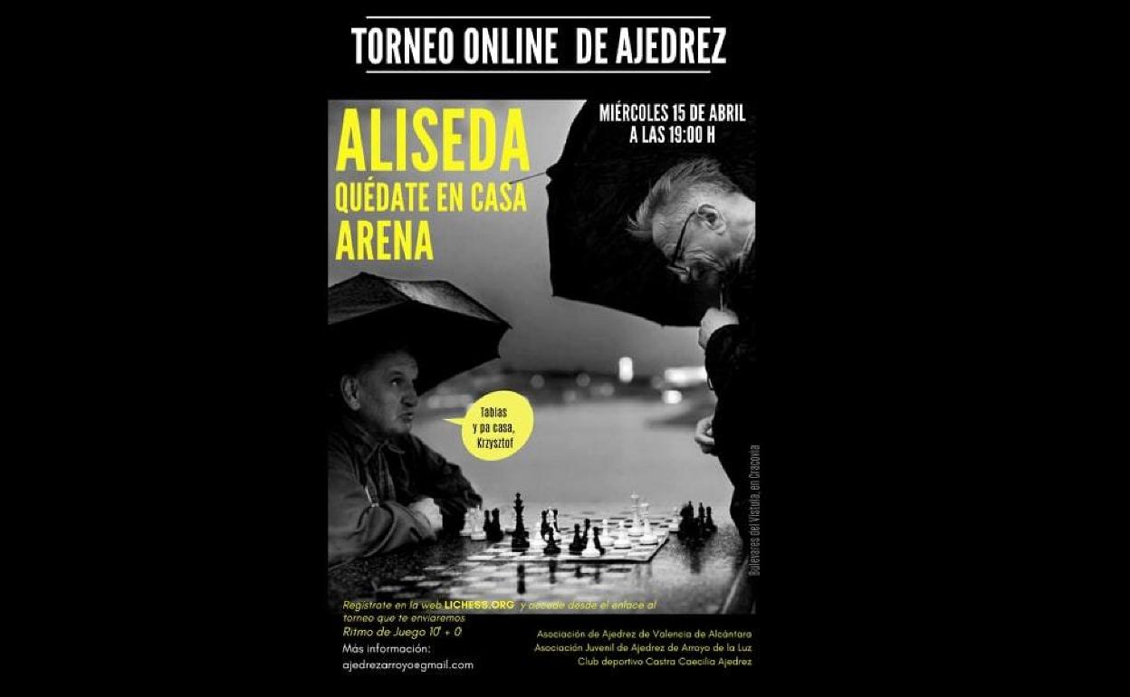 El torneo, con el nombre 'ALISEDA Quédate en Casa Arena' tendrá lugar en la tarde de hoy miércoles, 15 de abril, a las 19.00 horas, y se jugará, nuevamente, en la web lichess.org
