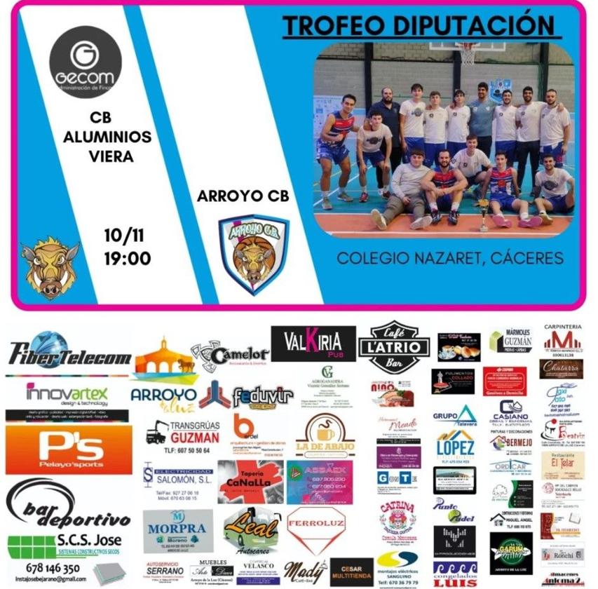 El próximo domingo, día 10 de noviembre, el Arroyo CB jugará el que será el tercer encuentro del Trofeo Diputación y volverán a jugar, como en la jornada anterior, fuera de casa, enfrentándose al CB Aluminios Viera.