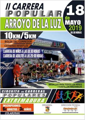El próximo sábado, 18 de mayo, la localidad cacereña de Arroyo de la Luz acogerá la que será su segunda Carrera Popular, perteneciente al Circuito de Carreras Populares de Extremadura. La prueba está organizada por el Ayuntamiento de la localidad, que contará con pulsaciones.net Organización de Eventos Deportivos como empresa montadora de la prueba.