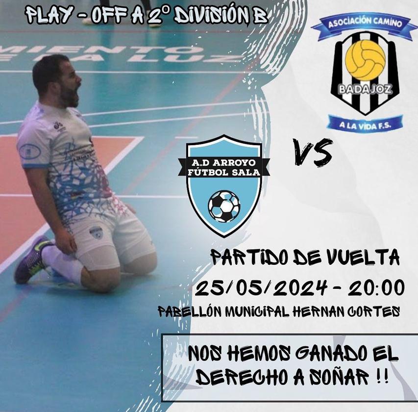 Los arroyanos vencieron al equipo pacense en el primer partido, que se jugó en Arroyo de la LuzDurante la tarde de hoy sábado, día 25 de mayo, el Instalaciones Térmicas Talavera Arroyo FS volverá a verse las caras con el GV Energía Albroksa/Asociación Camino a la Vida FS, equipo contra el que se están jugadno el ascenso a Segunda División B.