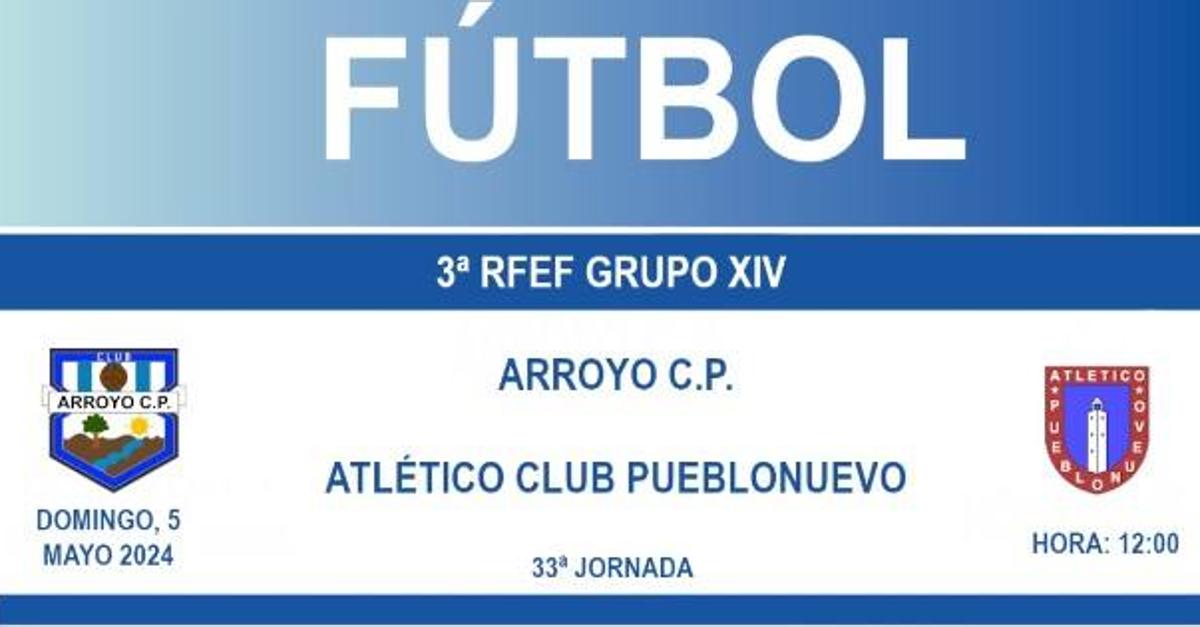 El club arroyano llega a esta jornada en el puesto 11 de la clasificaciónMañana domingo, día 4 de mayo, el Arroyo CP enfrentará el que será el encuentro correspondiente a la jornada 33 de la actual liga de Tercera División, el penúltimo antes del final de la liga, de forma que solo quedan 6 puntos para que el Arroyo pueda arañar algunos puestos para terminar lo más alto posible en la clasificación.