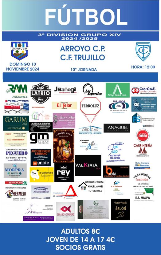 El club arroyano ocupa el puesto 10 en la clasificación y los visitantes el 12El próximo domingo, día 9 de noviembre, el Arroyo CP enfrentará el que será el encuentro correspondiente a la décima jornada de la actual liga de Tercera RFEF.