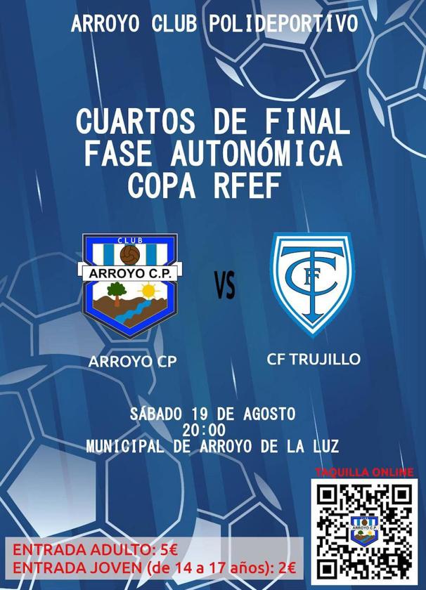 En concreto, el club arroyano se enfrentará al CF Trujillo. El encuentro, que se jugarán el el Campo de Fútbol Municipal de Arroyo de la Luz, comenzará a las 20.00 horas del sábado 19 de agosto.