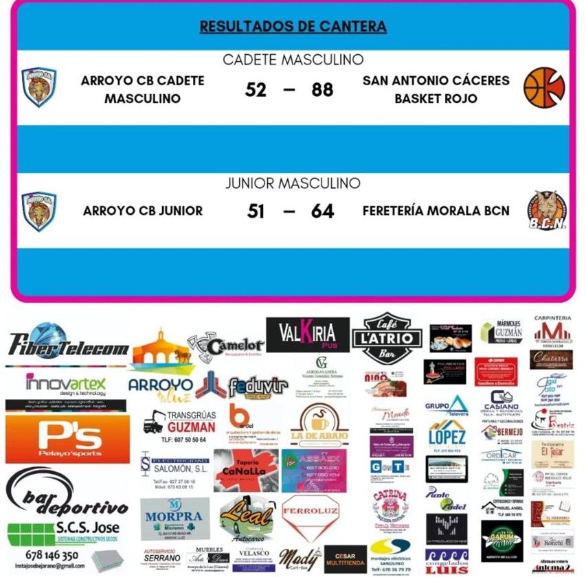 Ambos encuentros finalizaron con resultado desfavorable para los equipos arroyanosAunque este último fin de semana fue festivo y la mayoría de los clubes se fueron de puente, los equipos de la cantera del Arroyo CB no han descansado y han jugado los partidos atrasados correspondientes a la jornada 7 junior y a la jornada 3 cadete.