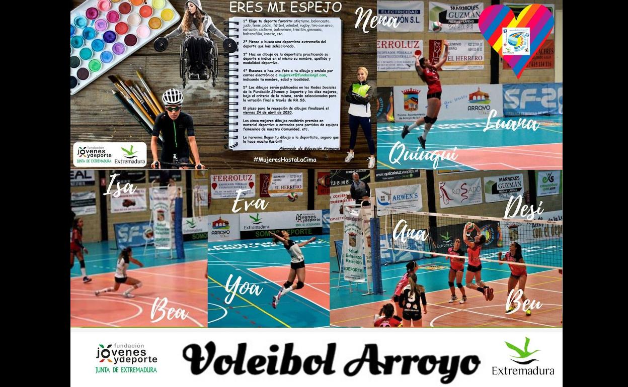 Así, ... el club de voleibol de Arroyo de la Luz se unió a la propuesta y lanzó el reto en la localidad para que se eligiera a la jugadora favorita; Yohana, Bea, Quiuqui, Beu, Luana, Espino, Nena, María Carrero, Eva, Desi, Ana Lucas,… se dibuje en papel y se mande así a la Fundación Jóvenes y Deporte.