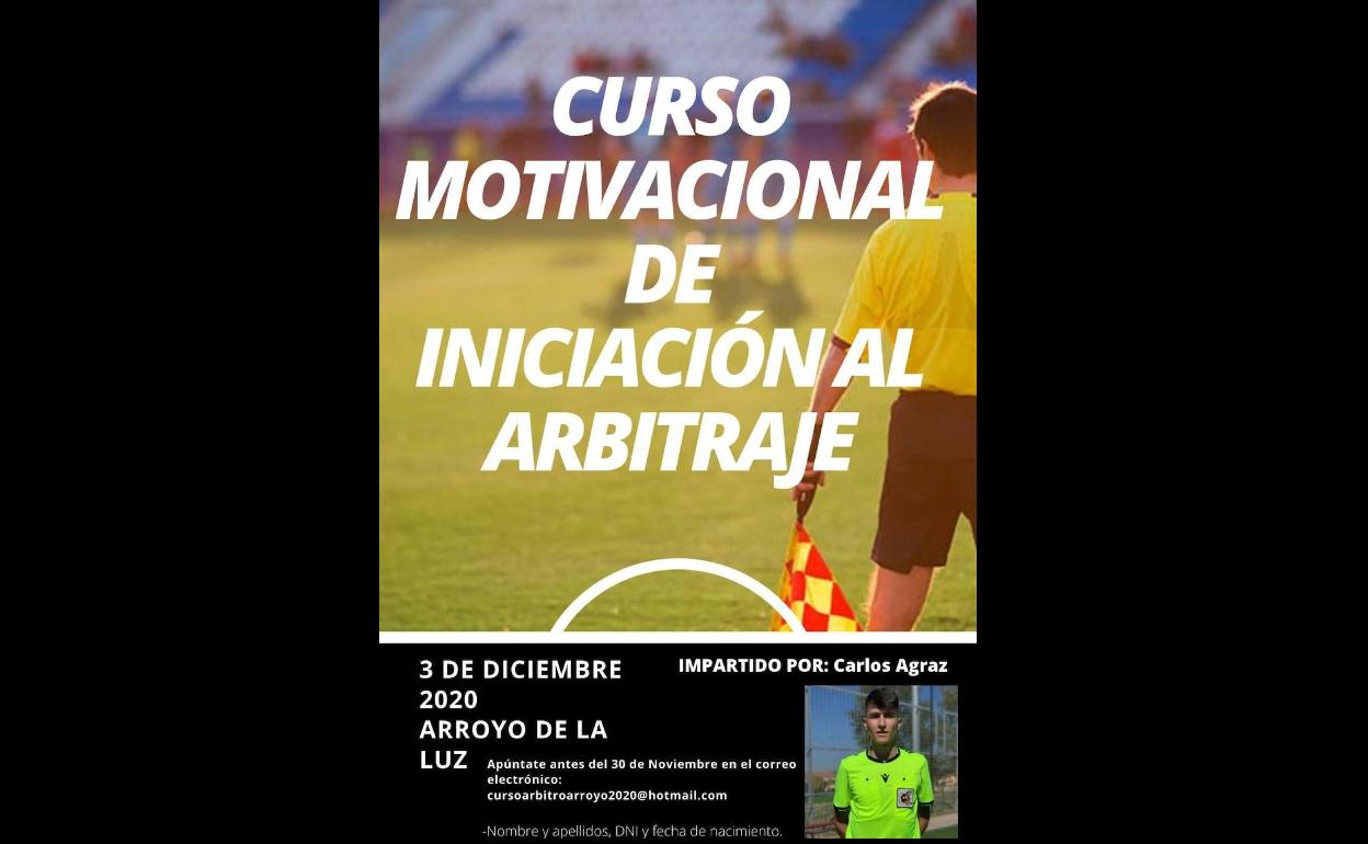 El próximo jueves, día 3 de diciembre se llevará a cabo en Arroyo de la Luz un 'Curso Motivacional de Iniciación al Arbitraje', un curso ... oficial de la Federación de Arbitraje impartido por Carlos Agraz consistente en una video-conferencia motivacional para la captación de futuros árbitros que se llevará a cabo a través de la aplicación ZOOM, a las 17.00 horas.