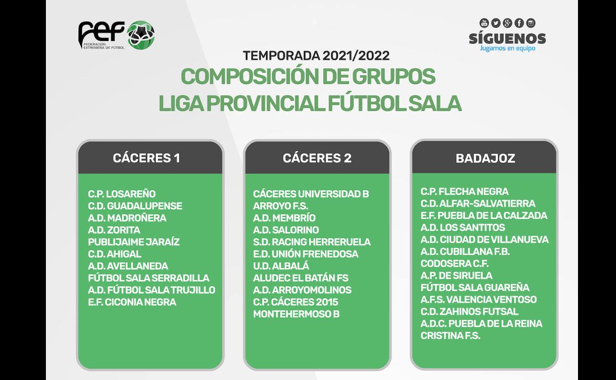 La competición estará formada por 3 grupos; dos de Cáceres y uno de Badajoz.