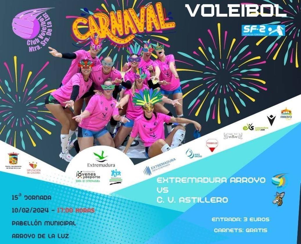 La directiva del Extremadura Arroyo ha decidido adelantar una hora, a las 17.00 horas, el partido que tiene previsto disputar el próximo sábado 10 de febrero ante el CV Astillero cántabro, para que sus aficionados puedan disfrutar del Desfile de Carnaval que se celebrará un poco más tarde en el centro de Arroyo de la Luz.