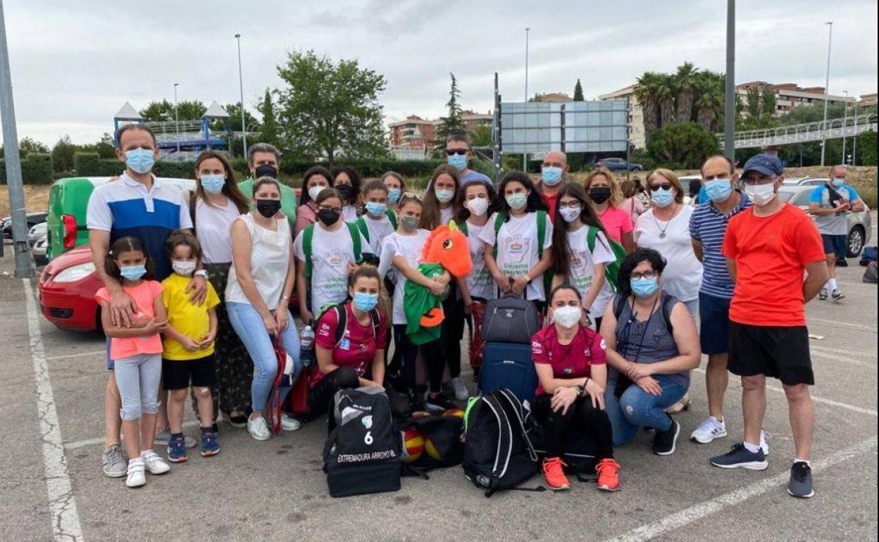 Al frente de la expedición arroyana figuran su entrenadora, Carmen Castaño, y la responsable de la dirección técnica del club extremeño, Judith Pérez.
