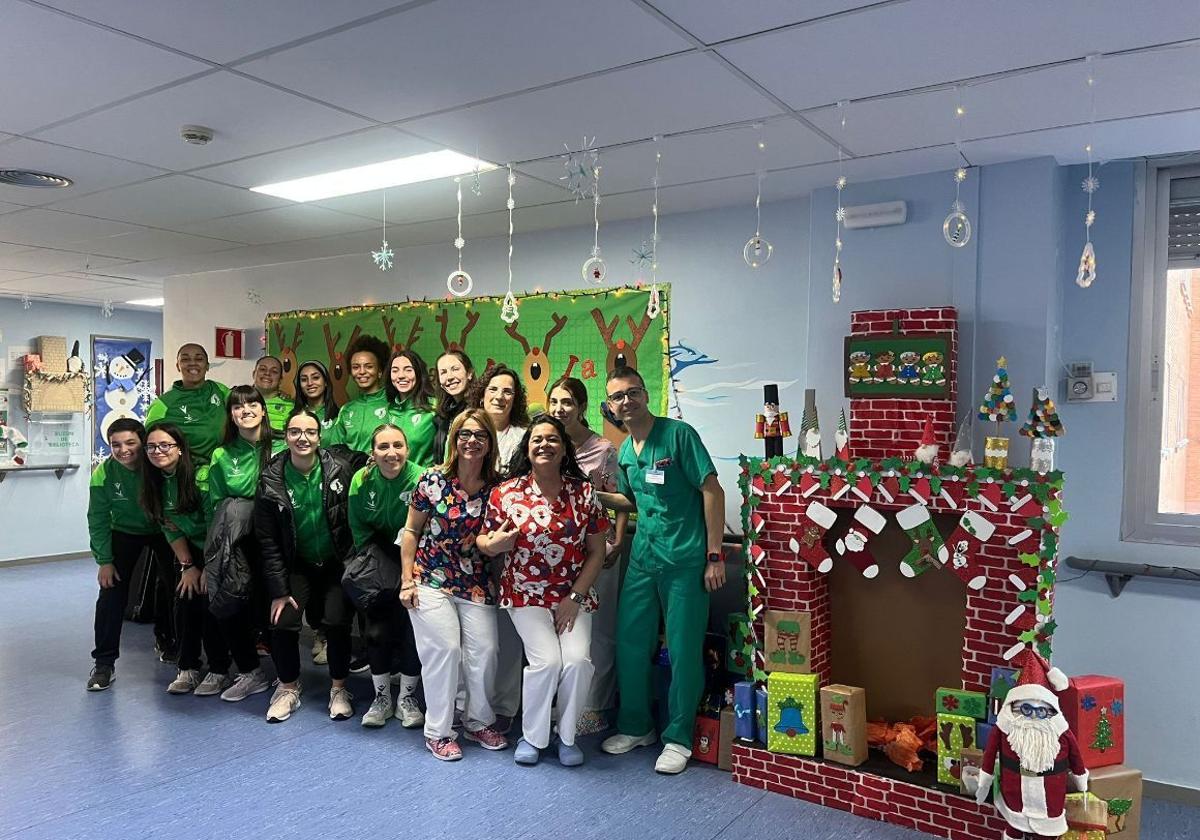 La plantilla del Extremadura Arroyo, con su entrenadora Flavia Lima a la cabeza, visitó durante la tarde de ayer viernes, 20 de diciembre, la planta de Pediatría del Hospital San Pedro de Alcántara (HSPA) de Cáceres, y ha llevado regalos a los niños que, junto a sus familiares, deben pasar estas entrañables fiestas hospitalizados.
