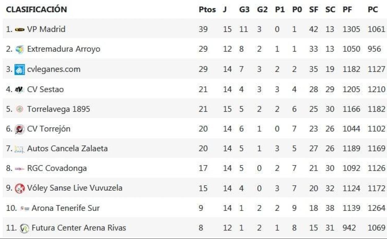 Ayer, el líder de la clasificación, el VP Madrid, perdió por primera vez en lo que va de liga en Sestao por un 3-0. Por su parte, Covadonga perdió en casa frente al Sanse y Torrelavega ganó en casa al Arona. Precisamente el Torrelavega será el próximo rival al que se tendrá que enfrentar la escuadra extremeña.