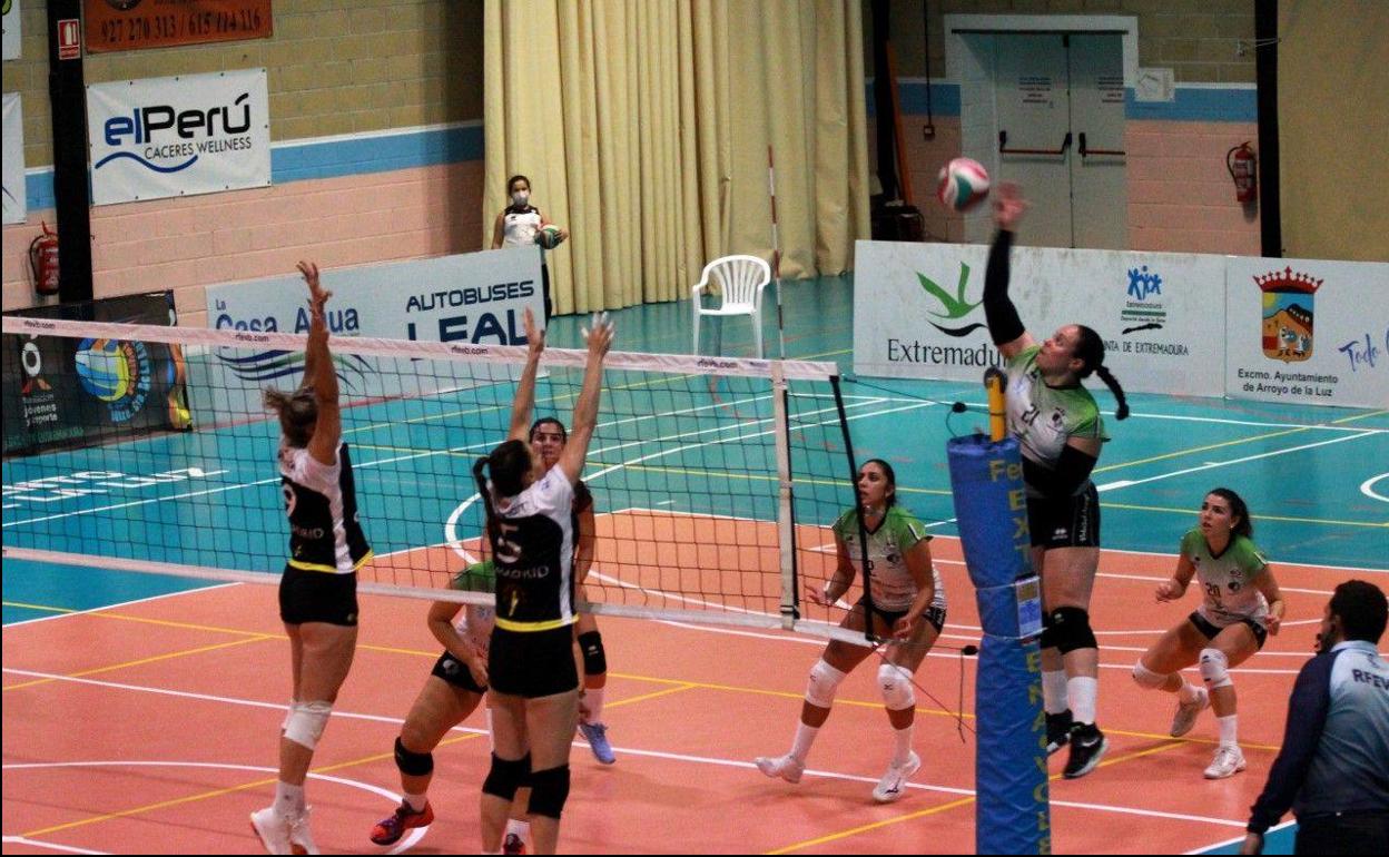 Tras ese parcial, la entrenadora del cuadro extremeño, Flavia Lima, dio entrada de Desireé Castaño, que tuvo una acertadísima actuación, y la dinámica del encuentro varió radicalmente, apuntándose las dos mangas siguientes la escuadra de Arroyo de la Luz, con un juego vibrante, que colapsó el potente sistema de juego madrileño.