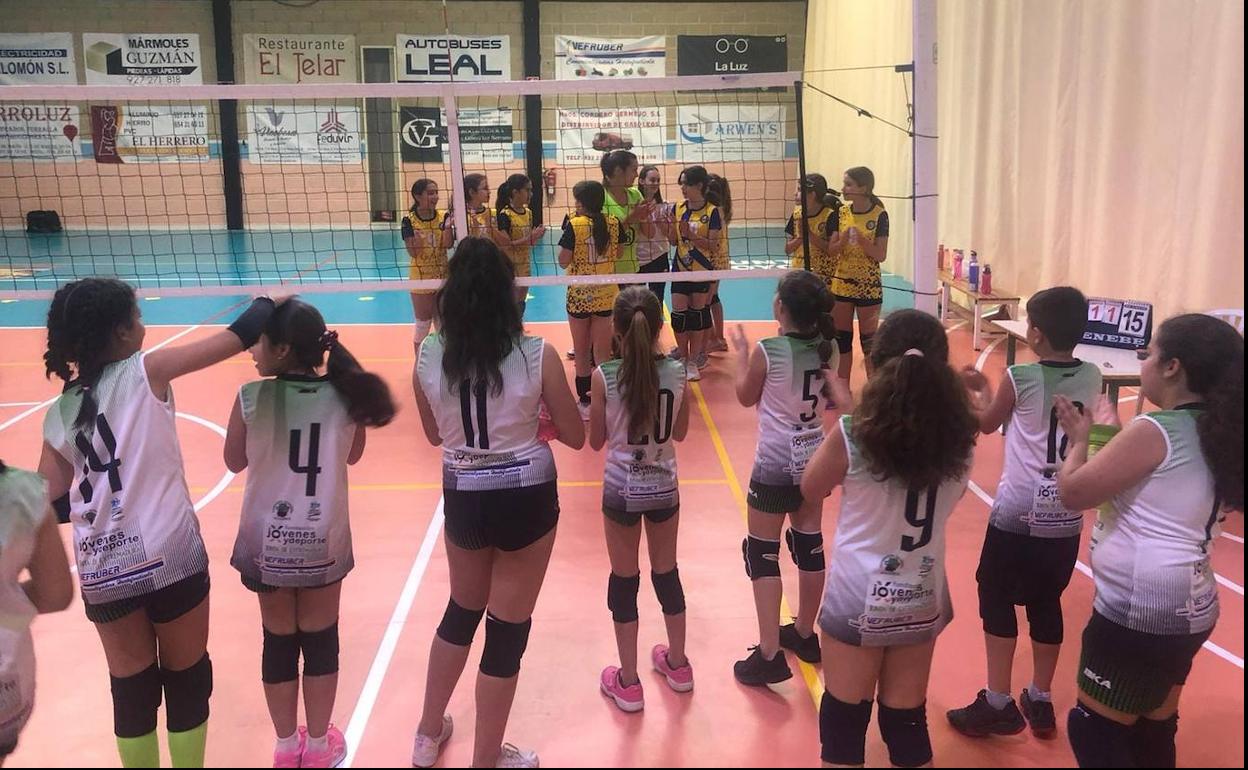 Tanto los equipos locales, entrenados por Carmen Castaño y María Molano, como los visitantes disfrutaron de una tarde de voleibol acompañadas por mucho público que ocupó la grada acompañando a las jóvenes jugadoras.