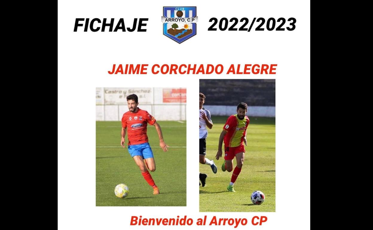 En las últimas horas ha anunciado un nuevo fichaje, el de Jaime Corchado Alegre; extremo de 24 años al que, desde el club arroyano, han definido como un jugador de «gran velocidad y desborde».