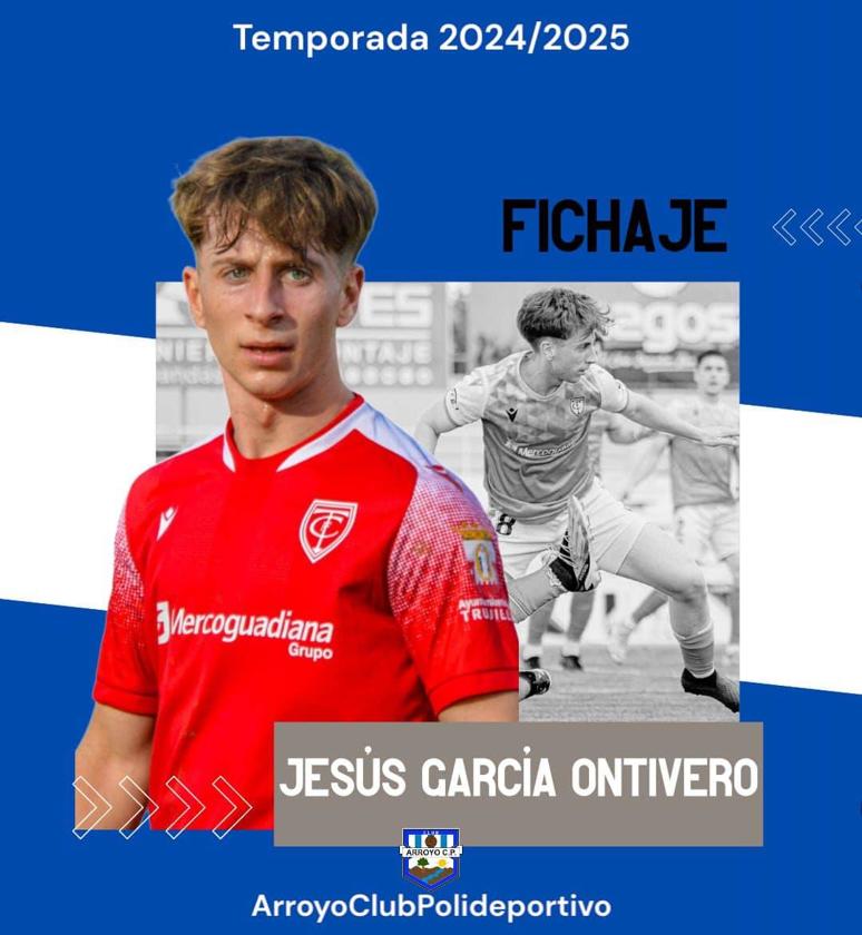 El joven centrocampista llega procedente del CF TrujilloEl Arroyo CP sigue trabajando en conformar la plantilla con la que se enfrentarán a la temporada 2024/2025. Dentro de dicho marco, en el día de ayer anunciaron un nuevo fichaje; el del centrocampista Jesús García Ontivero.