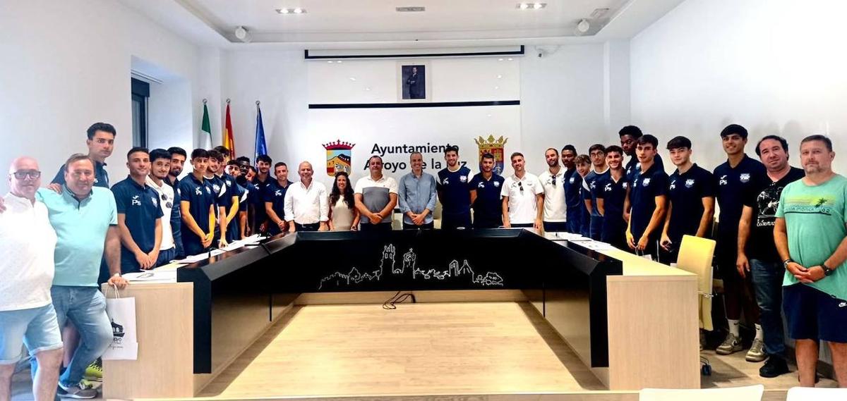 Jugadores, directiva y cuerpo técnico del Arroyo CP se empapan de Arroyo de la Luz
